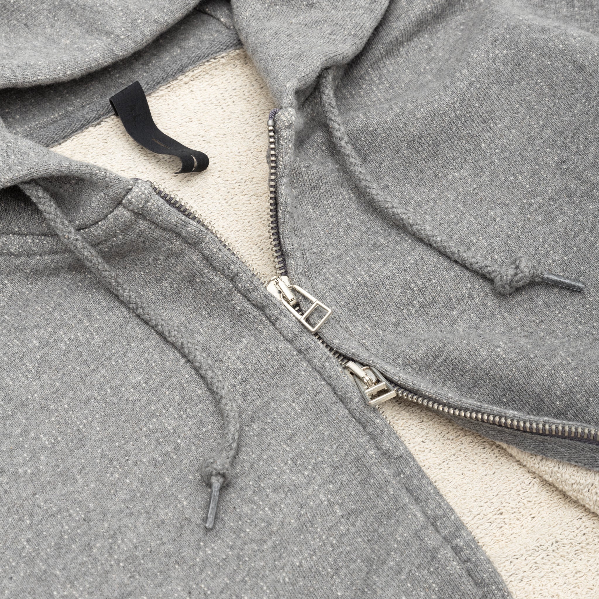 - Raw edge detailing throughout